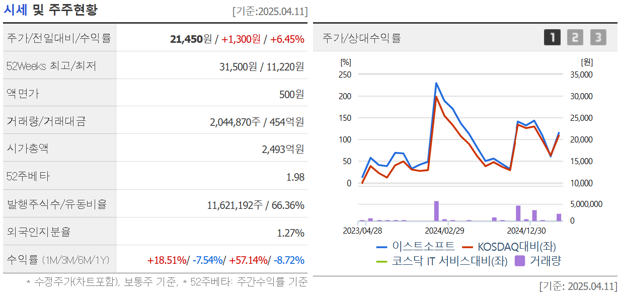 AI 및 소프트웨어 섹터의 성장성과 이스트소프트의 기술력은 장기 투자 매력 있음.