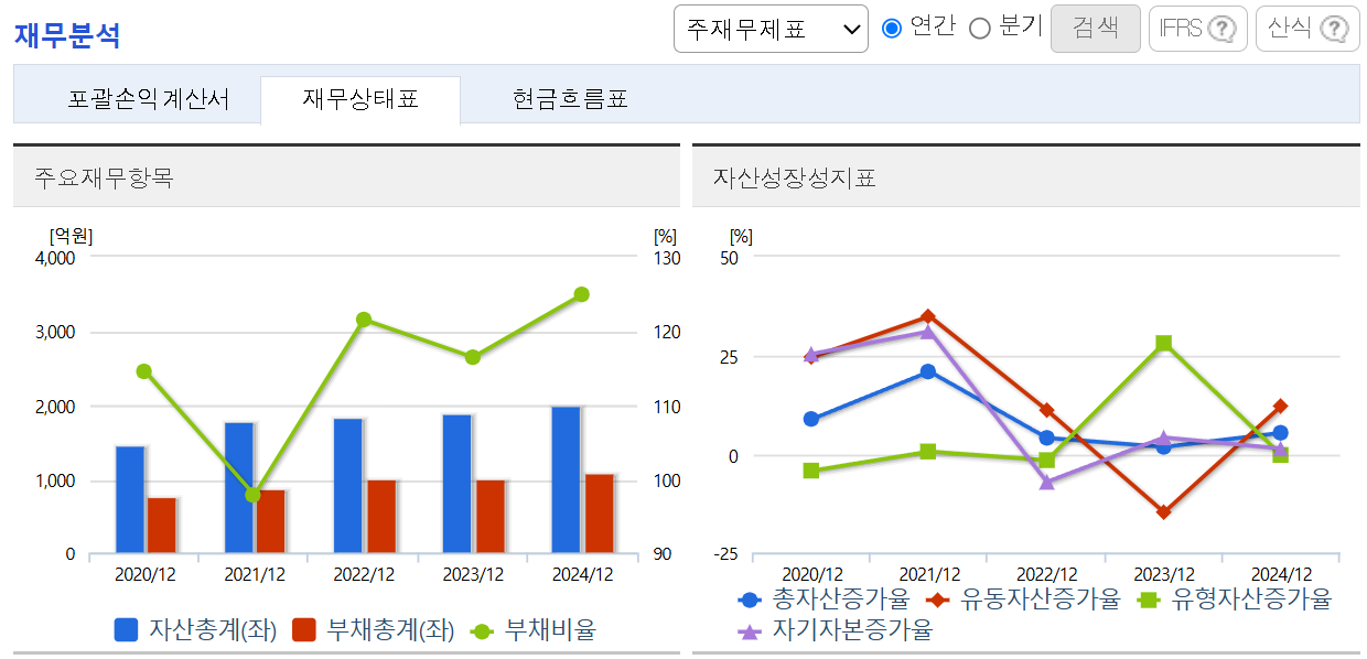 - 부채비율: 124.92%로 업종 평균 대비 높음