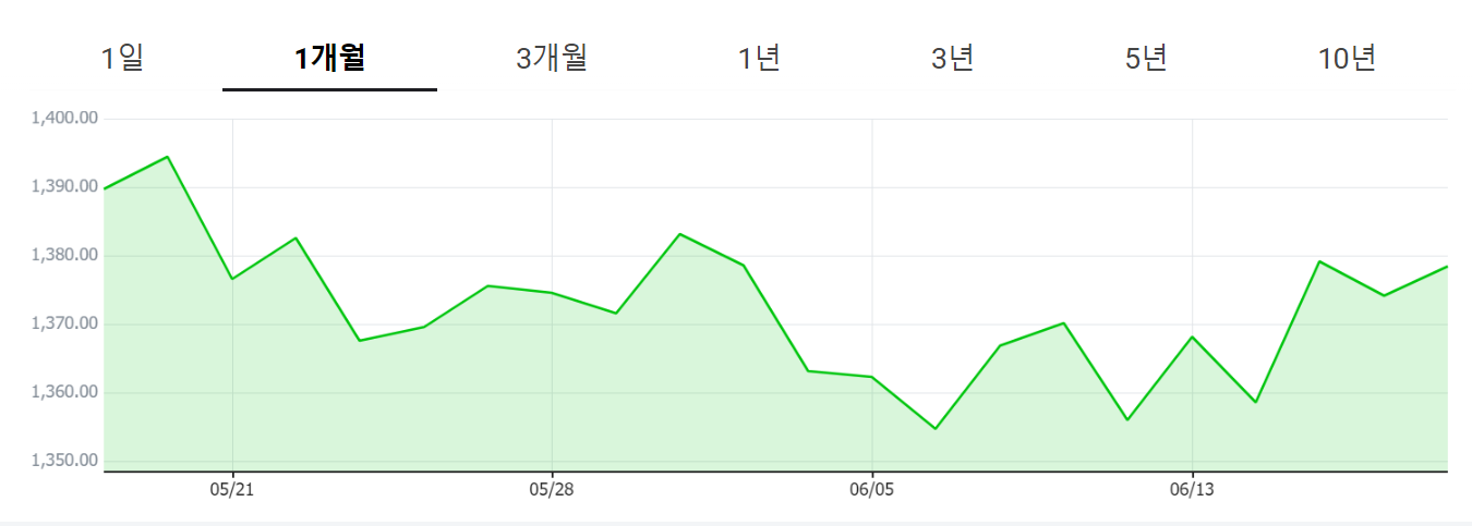- 6월 10일 최저: 1,354.17원