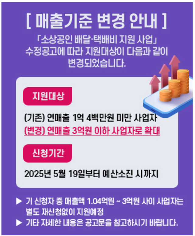 | 신청 사이트 | 소상공인배달택배비지원.kr 또는 소상공인24 |