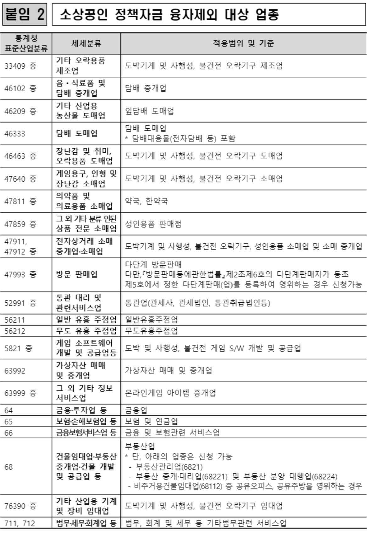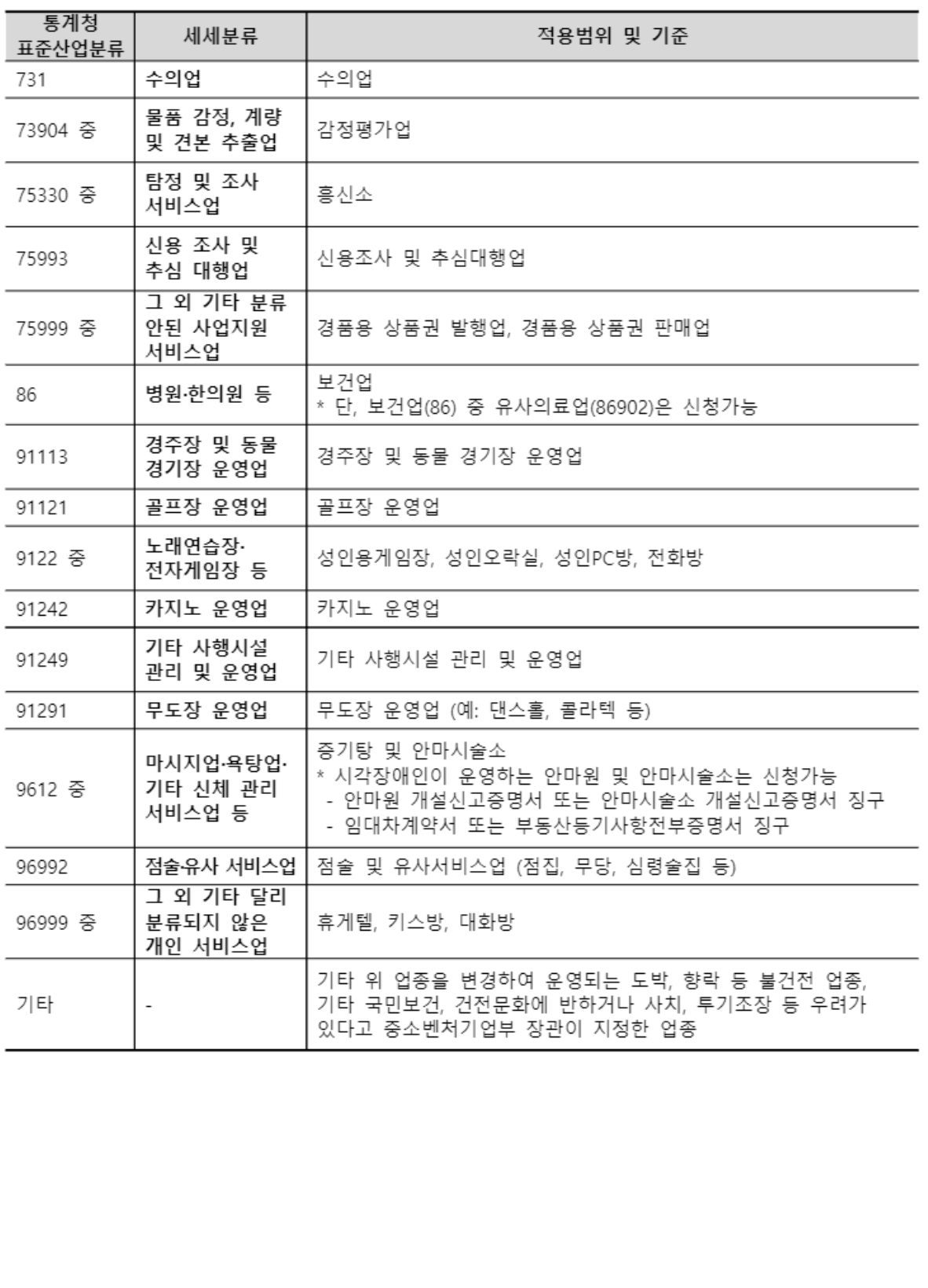 | 업종 제한 | 유흥업, 배달대행업 등 일부 제외 업종 있음 |