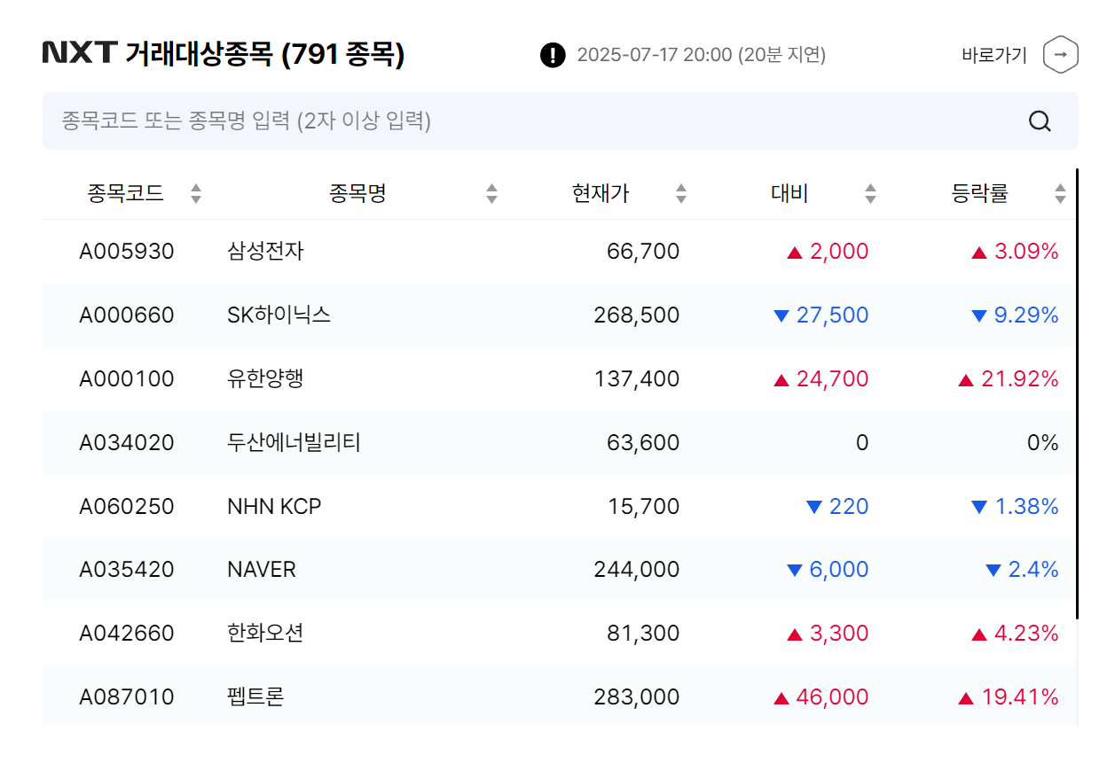 | 항목 | 넥스트레이드(NXT) | 한국거래소 |