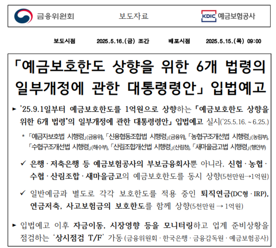 2025년, 퇴직연금 보호제도는 예금자 보호 한도 상향 예정(5,000만원 → 1억 원, 9월 1일 시행 예정), 압류 금지, 세제 혜택, 실물이전제도 등으로 더욱 든든해졌습니다.